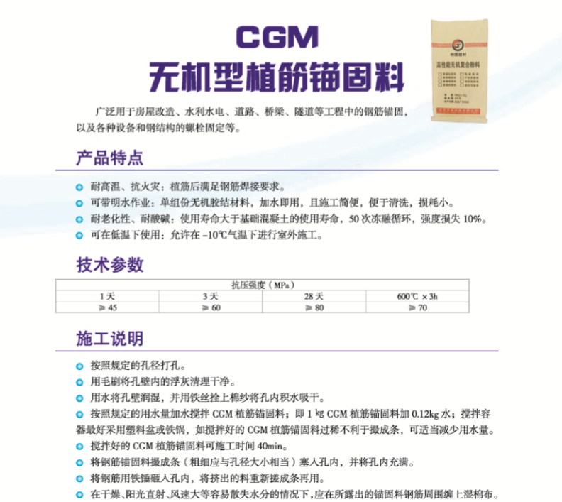 您的位置:首頁(yè) > 產(chǎn)品展示 > > CGM無(wú)機(jī)植筋錨固料